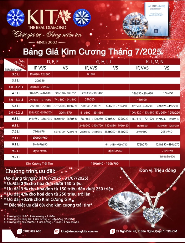 KITA trân trọng mang đến cho quý khách những viên kim cương tự nhiên 100%, để mỗi khoảnh khắc tỏa sáng đều trở thành dấu ấn vĩnh cửu trên hành trình cuộc sống.